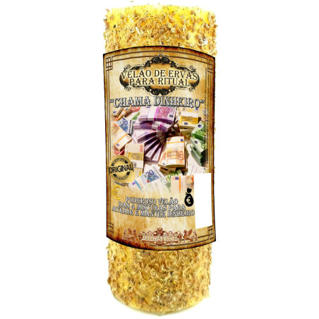 O velão de ervas chama dinheiro foi cuidadosa e artesanalmente preparado seguindo preceitos e formulas ancestrais afro-brasileiras, recorrendo à plantas, sementes e ervas especificas, às mais finas parafinas e ceras e aos mais naturais óleos essenciais. Este velão de ervas chama dinheiro é especialmente preparado para, seguindo um ritual especifico, atingir o fim pretendido.